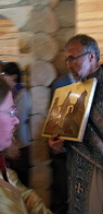 Im Anschluß an die Weihe des Altares wird diese Ikone nebst anderen vorgeschrieben Ritualien um die Kirche von einem Priester getragen und nach erfolgter äußerer Weihe der Kirche wieder auf ihr Podest gelegt.