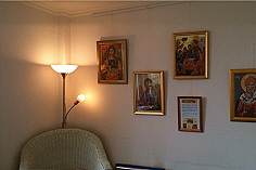 Hier heilt die Natur unter Frau Schulzes ärztlicher Fürsorge. Ausgestellt werden 7 gerahmte Drucke meiner Ikonen. Es gibt Infos über die Originale und Inhalte der Motive.