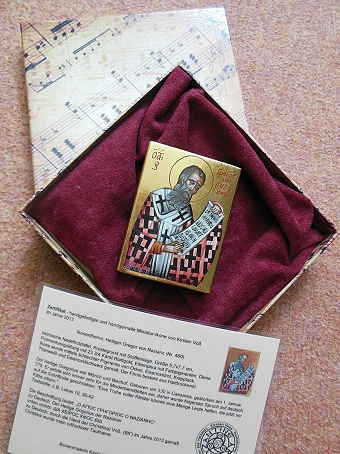 Zertifikat - handgefertigte und handgemalte Miniatur-Ikone von Kirsten Voß im Jahre 2013 - Ikonenthema: Heiliger Gregor von Nazianz (Nr. 460)