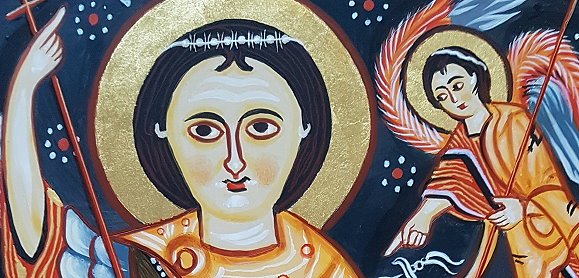 Vielleicht ergreift Sie, liebe Leserinnen und Leser, auch der Funke dieser vergeistigten Darstellung vom Kampf Gut gegen Böse in der religiös gewohnten Herangehensweise. Diese Ikone belebt unser Farbensinn gleichermaßen wie es den tiefen, künstlerischen Ausdruck von Glaube und Gewissheit über die geistige Welt abbildet.