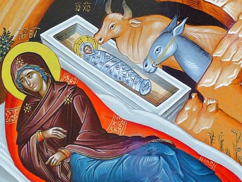 Unser aller Leben bekam einen neuen Sinn: der Erlösungsweg wurde durch die Geburt Christi für uns geöffnet. In Bethlehem, in einer kleinen Höhle soll es geschehen sein, und dort, angezeigt durch einen Stern, der weithin leuchtete und den heiligen drei Königen den Weg aufzeigte, liegt seither auch der Grundstein unserer Zeit und ist mit Weihnachten verbunden. Griechische Ikonen mit der Darstellung der Christi Geburt, im Griechischen die Gennesis genannt (Η Γεννεσης), sind feine der schönsten, lebendigsten Ikonen überhaupt. Ein massiger Berg, der eine dunkle Höhle umschließt, darin ein steinerner Trog mit den klitzekleinen Jesuskind.