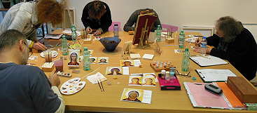 Ikonen in traditioneller Weise erstellen: mit Eitempera und Farbpigmenten auf einer mit Kreidegrund grundierten und fein geschliffenen Holztafel (Größe 10x12 cm). Die Vergoldung des Heiligenscheins erfolgt im Kurs mit Bronze. Wer gern Blattgold verwenden möchte, bringt dieses bitte mit. Die angewandte Methode der Vergoldung ist dabei identisch. Eine Ikone der Jungfrau Maria, Christus, Johannes der Täufer, der Heilige Nikolaus sowie ein Engel stehen im Kurs zur freien Motivauswahl. Anschauliche Erklärungen anhand von Fotografien der einzelnen Malschritte sowie die sachkundige Unterstützung der Kursleiterin ermöglichen den perfekten Einstieg in die Eitempera-Malerei. Talent ist keine Voraussetzung!